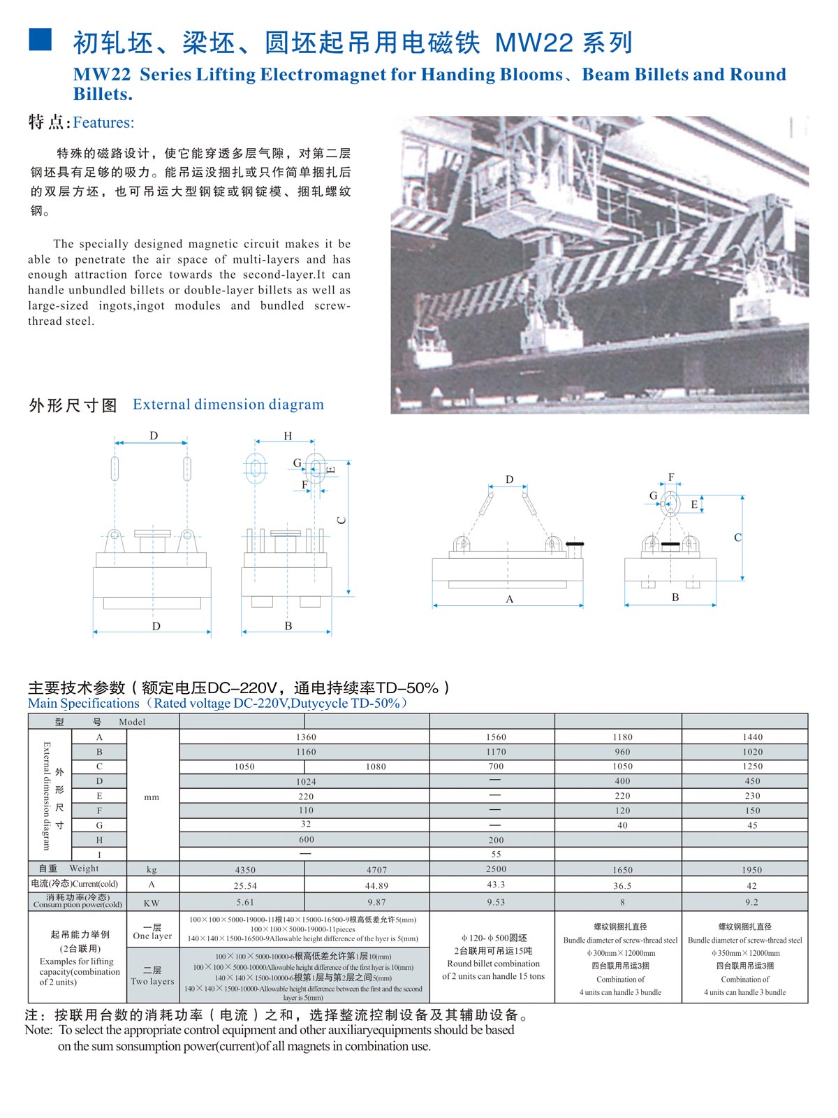 初軋坯、梁坯、圓坯起吊用電磁鐵MW22系列