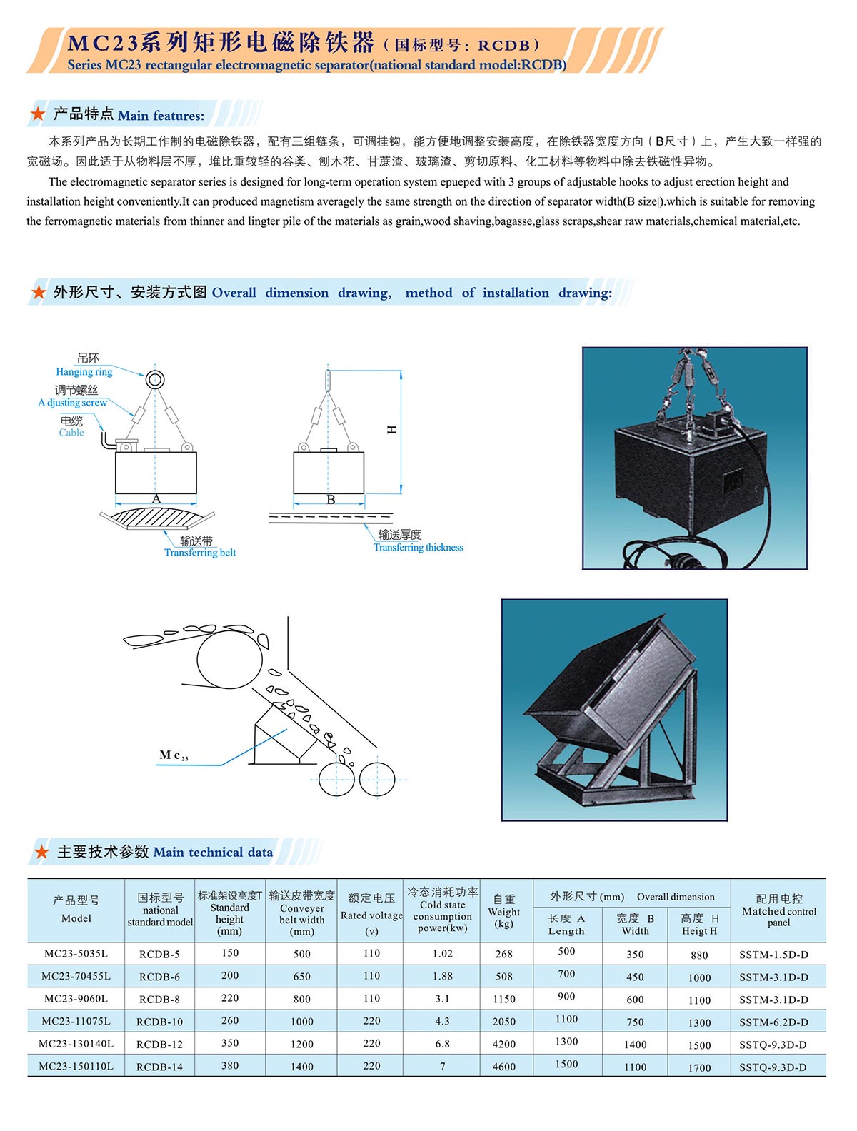 MC23系列矩形電磁除鐵器(國標型號:RCDB)