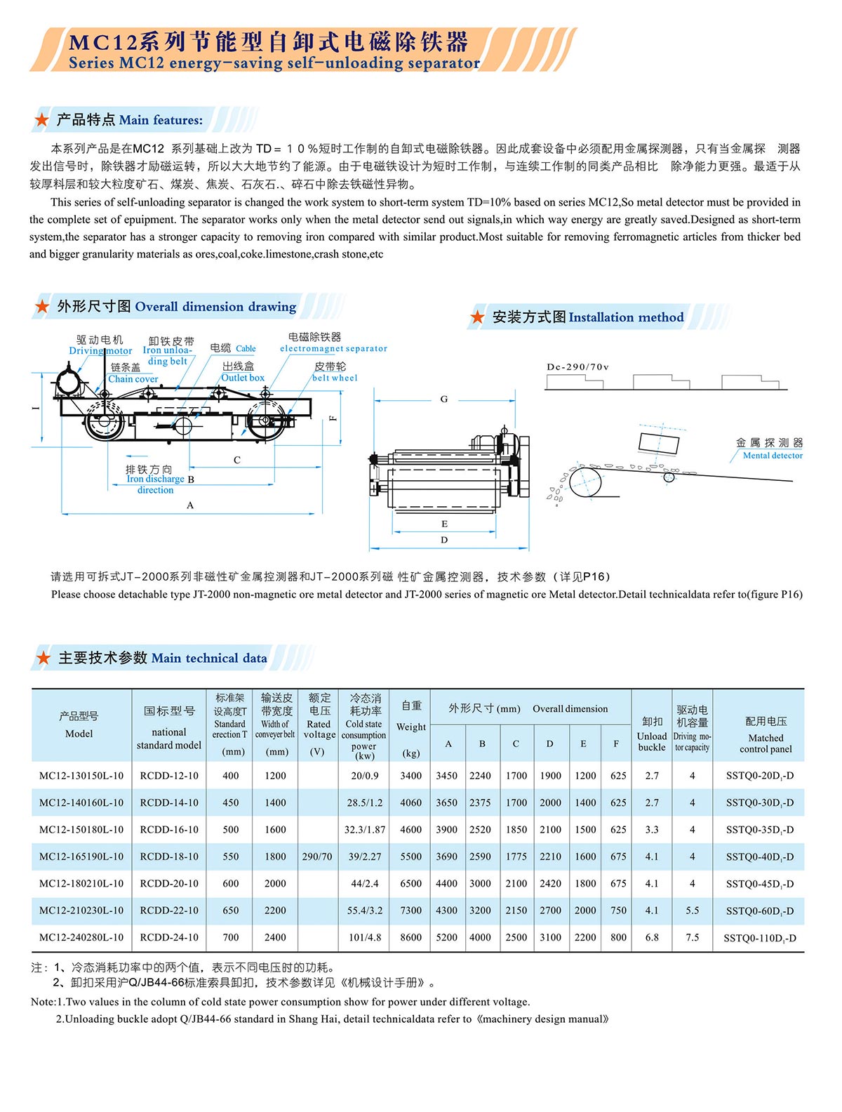 MC12系列節(jié)能型自卸式電磁除鐵器